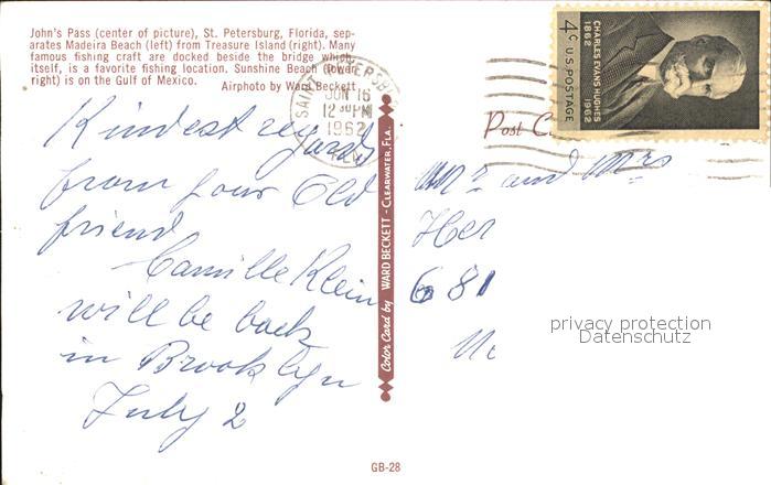 11693800 old postcard Saint Petersburg Florida John’s Pass Bridge Gulf of Mexico aerial view postalisch gelaufen Erhaltung siehe scans KatCode: 14140110000000