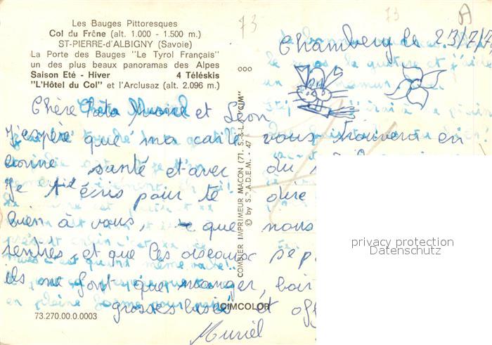 13521875 Saint-Pierre-d Albigny Col du Frene Hotel du Col postalisch nicht gelaufen Erhaltung siehe scans [KathaD81] KatCode: 11170073273270