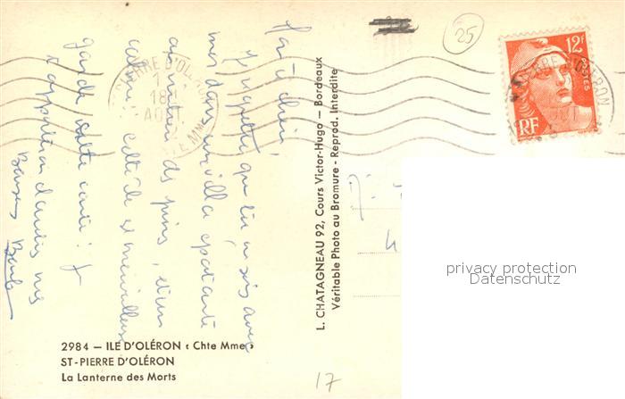 13493983 carte postale Saint Pierre d Oleron La Lanterne des Morts postalisch gelaufen Erhaltung siehe scans [FriedD77] KatCode: 11170017217385