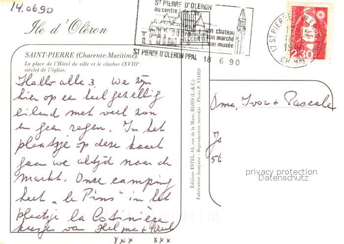 13051415 carte postale Saint Pierre d Oleron La place de Hotel de ville et le clocher de eglise postalisch gelaufen Erhaltung siehe scans [WerneD78] KatCode: 11170017217385