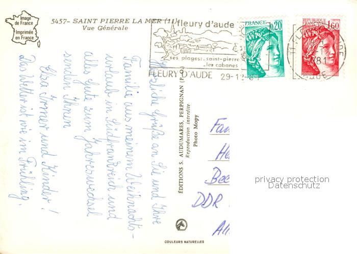 13606754 carte postale Saint Pierre la Mer Fliegeraufnahme Plage postalisch gelaufen Erhaltung siehe scans [LiesaD40] KatCode: 11170011311145