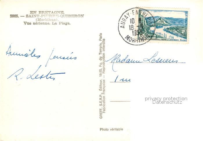 13143539 carte postale Saint-Pierre-Quiberon Fliegeraufnahme Plage postalisch gelaufen Erhaltung siehe scans [NatalD47] KatCode: 11170056156234