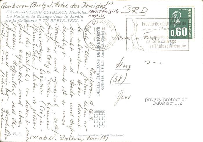 12296983 carte postale Saint-Pierre-Quiberon Le Puits et la Grange dans le Jardin de la Creperie Ty Breiz Izel postalisch gelaufen Erhaltung siehe scans KatCode: 11170056156234