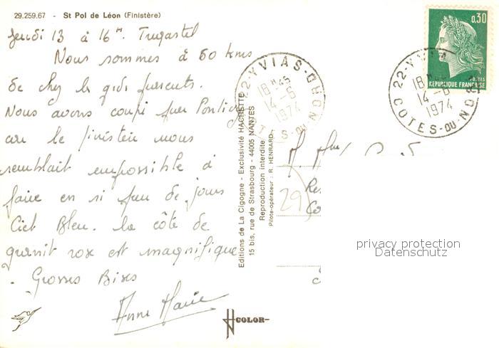 13162386 carte postale Saint-Pol-de-Leon Vue aérienne postalisch gelaufen Erhaltung siehe scans [FriedD77] KatCode: 11170029329259
