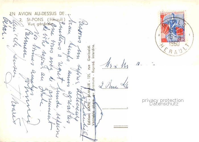 12660566 carte postale Saint-Pons-de-Thomieres 34 Herault Fliegeraufnahme postalisch gelaufen Erhaltung siehe scans [LiesaD40] KatCode: 11170034134284