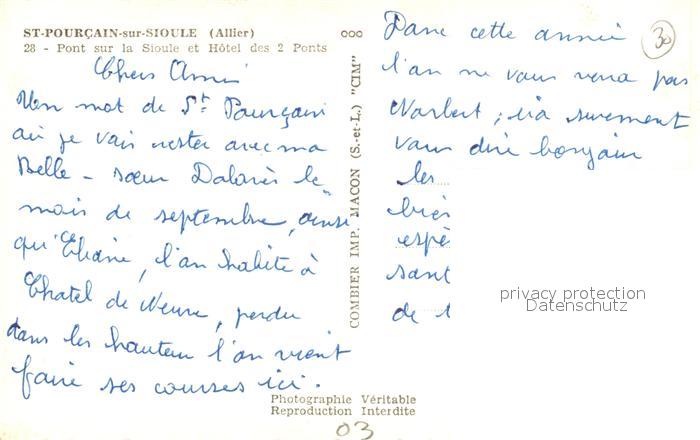 13490590 Saint-Pourcain-sur-Sioule Pont sur la Sioule Hotel des 2 Ponts postalisch nicht gelaufen Erhaltung siehe scans [FriedD77] KatCode: 11170003203254
