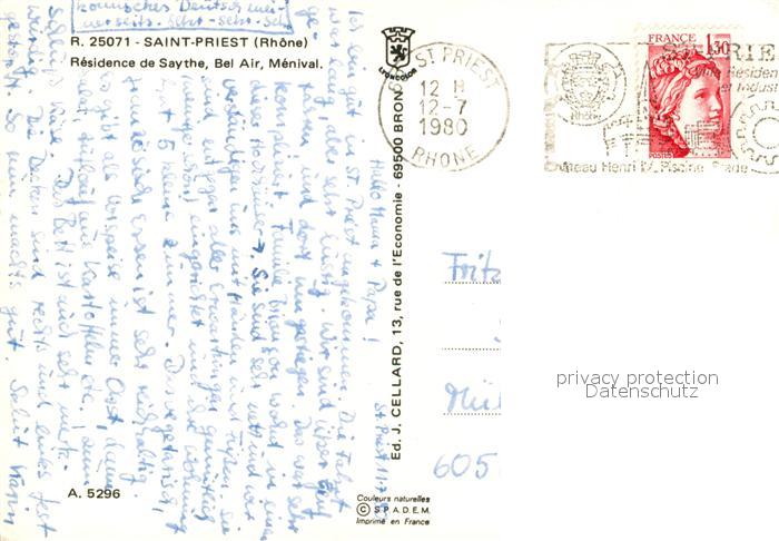 13261446 carte postale Saint-Priest Rhone Residence de Saythe Bel Air Menival postalisch gelaufen Erhaltung siehe scans [WerneD78] KatCode: 11170069169290