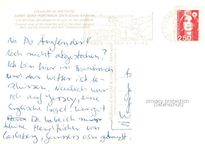 13787516 Saint-Quay-Portrieux 22 Cotes-d Armor Vue generale aerienne des plages et du port en eau protonde postalisch gelaufen Erhaltung siehe scans [WerneD78] carte postale Wern Katcode 11170022422325