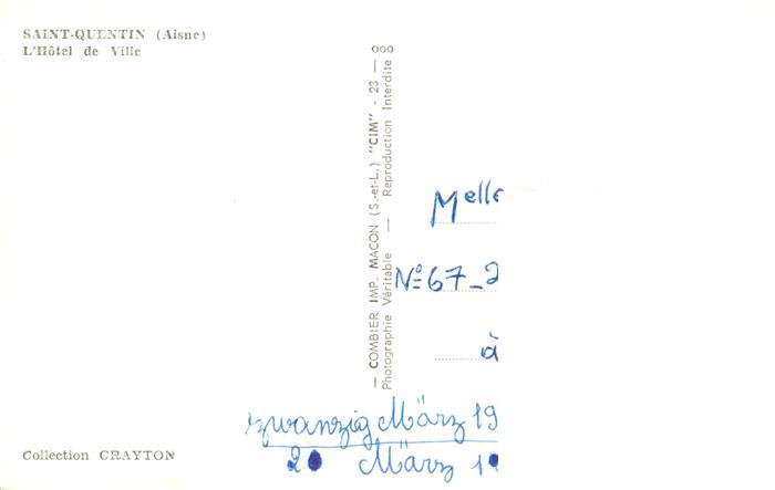 13903779 Saint-Quentin 02 Aisne Hotel de Ville postalisch nicht gelaufen Erhaltung siehe scans [WerneD78] Wern Katcode 11170002302691