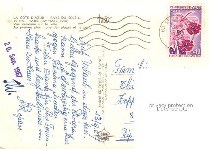 13218132 carte postale Saint-Raphael Var Fliegeraufnahme mit Hafen und Strand postalisch gelaufen Erhaltung siehe scans [LiesaD40] KatCode: 11170083183118