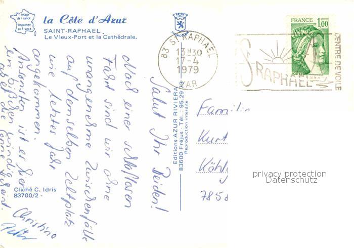 12860919 carte postale Saint-Raphael Var Hafen Kathedrale postalisch gelaufen Erhaltung siehe scans [AndreD76] KatCode: 11170083183118