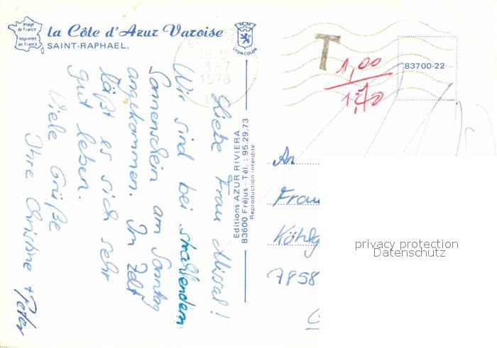 12860917 carte postale Saint-Raphael Var Kirche postalisch gelaufen Erhaltung siehe scans [AndreD76] KatCode: 11170083183118