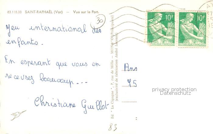 13485150 carte postale Saint-Raphael Var Le Port Cote d Azur postalisch gelaufen Erhaltung siehe scans [FriedD77] KatCode: 11170083183118