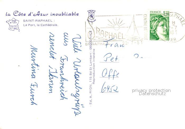 13055883 carte postale Saint-Raphael Var Le Port La Cathedrale postalisch gelaufen Erhaltung siehe scans [WerneD78] KatCode: 11170083183118