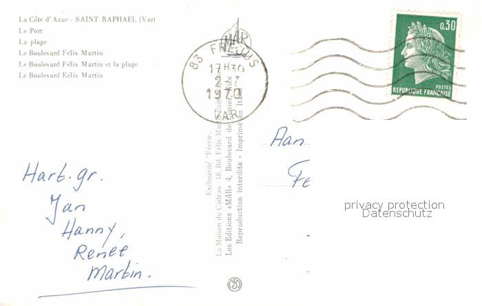 12860287 carte postale Saint-Raphael Var Le Port La plage Boulevard Felix Martin postalisch gelaufen Erhaltung siehe scans [WerneD78] KatCode: 11170083183118