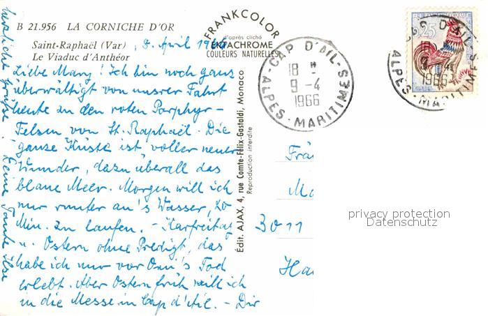 12662173 carte postale Saint-Raphael Var Le Viaduc d Antheor La Corniche d’Or postalisch gelaufen Erhaltung siehe scans [FriedD77] KatCode: 11170083183118