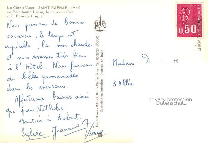 13519527 carte postale Saint-Raphael Var Parc Santa Lucia Port Baie de Frejus postalisch gelaufen Erhaltung siehe scans [KathaD81] KatCode: 11170083183118