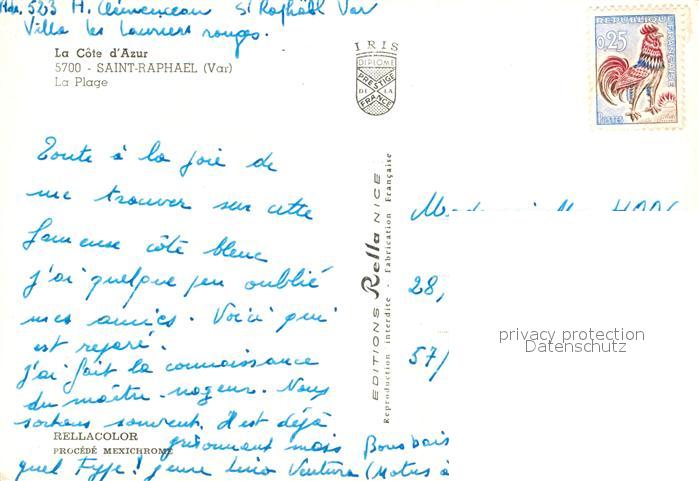 13359801 carte postale Saint-Raphael Var Strand postalisch gelaufen Erhaltung siehe scans [KathaD81] KatCode: 11170083183118