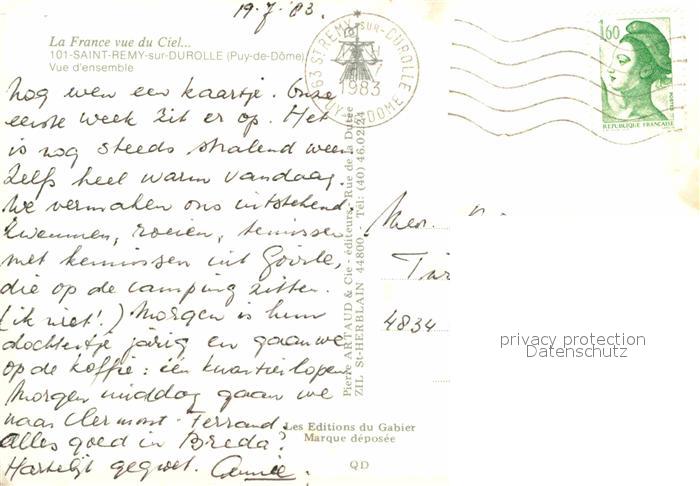 12825192 carte postale Saint-Remy-sur-Durolle Vue d ensemble Collection La France vue du ciel postalisch gelaufen Erhaltung siehe scans [FriedD77] KatCode: 11170063563393