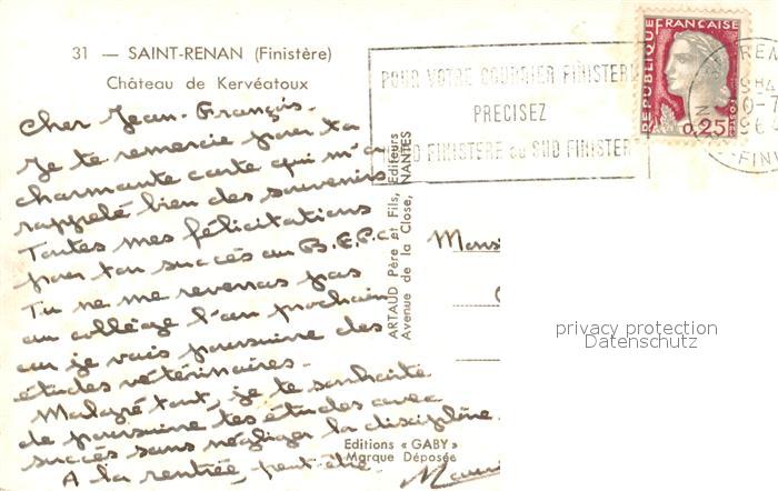 13580198 carte postale Saint-Renan Chateau de Kerveatoux postalisch gelaufen Erhaltung siehe scans [WerneD78] KatCode: 11170029129260