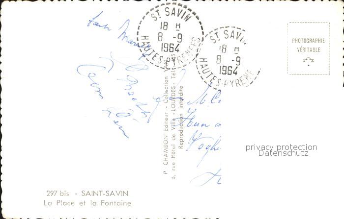 12613550 carte postale Saint-Savin Hautes-Pyrenees La Place et la Fontaine postalisch gelaufen Erhaltung siehe scans [WerneD78] KatCode: 11170065165396