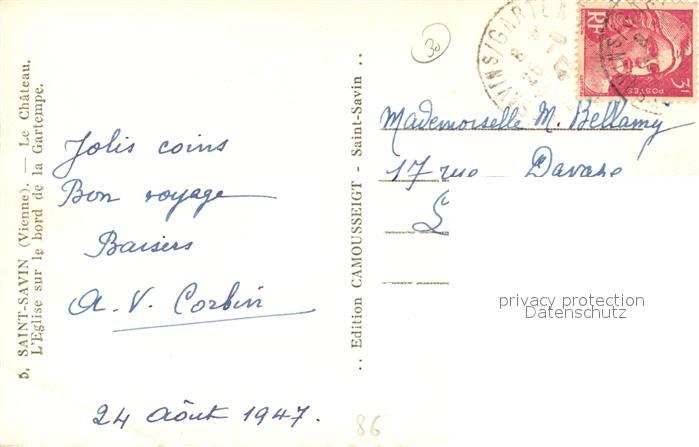 13485846 carte postale Saint-Savin Vienne Le Chateau Eglise sur le bord de la Gartempe postalisch gelaufen Erhaltung siehe scans [WerneD78] KatCode: 11170086286246