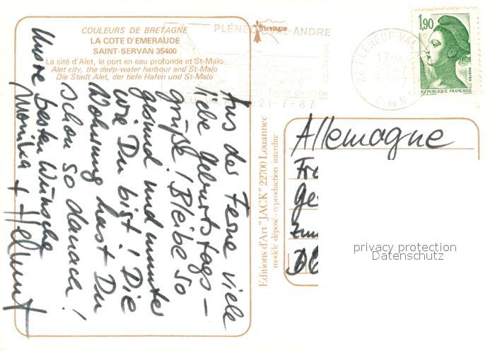 13337989 carte postale Saint-Servan Ille-et-Vilaine La cite d’Alet le port en eau profonde et St Malo Vue aerienne postalisch gelaufen Erhaltung siehe scans [WerneD78] KatCode: 11170035435288