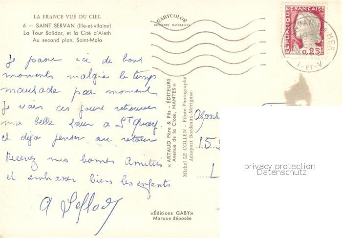 13581173 carte postale Saint-Servan Ille-et-Vilaine Tour Solidor Cité d Aleth au second plan Saint Malo vue aérienne postalisch gelaufen Erhaltung siehe scans [FriedD77] KatCode: 11170035435288