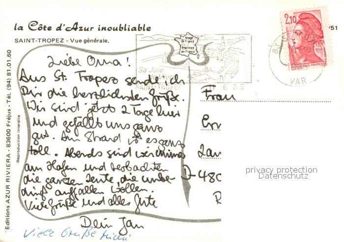 13091772 carte postale Saint Tropez Var Fliegeraufnahme postalisch gelaufen Erhaltung siehe scans [KathaD81] KatCode: 11170083183119