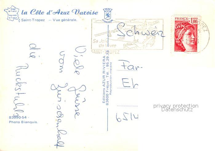 13606730 carte postale Saint Tropez Var Fliegeraufnahme avec Port postalisch gelaufen Erhaltung siehe scans [LiesaD40] KatCode: 11170083183119