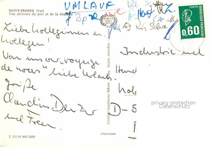 12853032 carte postale Saint Tropez Var Fliegeraufnahme Port postalisch gelaufen Erhaltung siehe scans [NatalD47] KatCode: 11170083183119