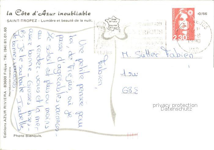 12310799 carte postale Saint Tropez Var Hafen Nacht postalisch gelaufen Erhaltung siehe scans KatCode: 11170083183119
