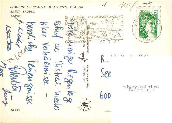 12663139 carte postale Saint Tropez Var Le Port postalisch gelaufen Erhaltung siehe scans [WerneD78] KatCode: 11170083183119