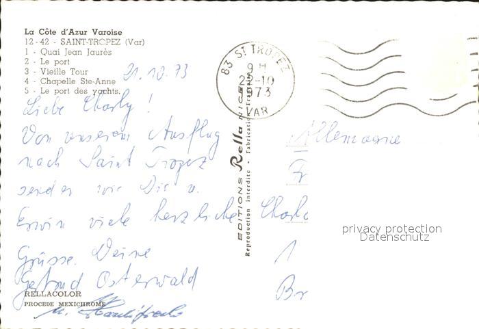 12593718 carte postale Saint Tropez Var Quai Jean Jaures Le port Vieille Tour Chapelle Ste Anne Port des Yachts postalisch gelaufen Erhaltung siehe scans [WerneD78] KatCode: 11170083183119