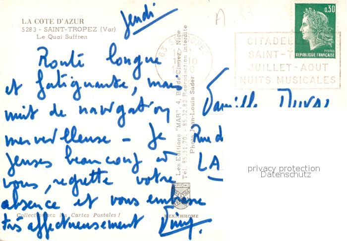 13514690 carte postale Saint Tropez Var Quai Suffren postalisch gelaufen Erhaltung siehe scans [KathaD81] KatCode: 11170083183119