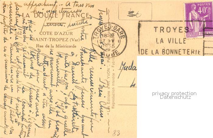 13487332 carte postale Saint Tropez Var Rue de la Misericorde postalisch gelaufen Erhaltung siehe scans [WerneD78] KatCode: 11170083183119
