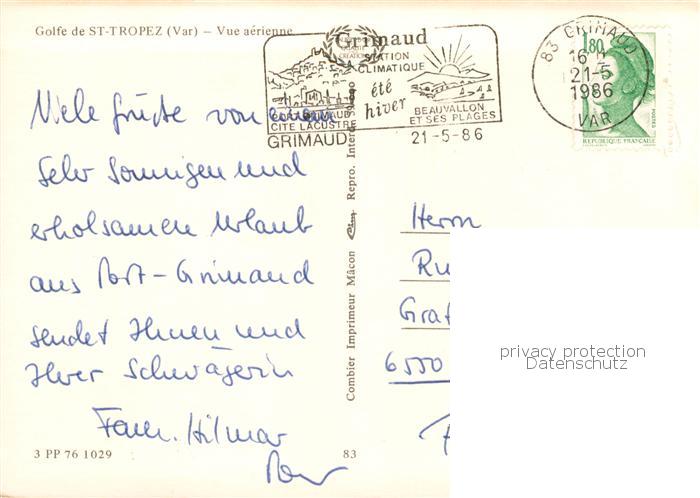 13787284 Saint Tropez Var Vue aérienne du Golfe de Saint Tropez postalisch gelaufen Fliegeraufnahme Erhaltung siehe scans [FriedD77] Fliegeraufnahme carte postale Frie Katcode 11170083183119