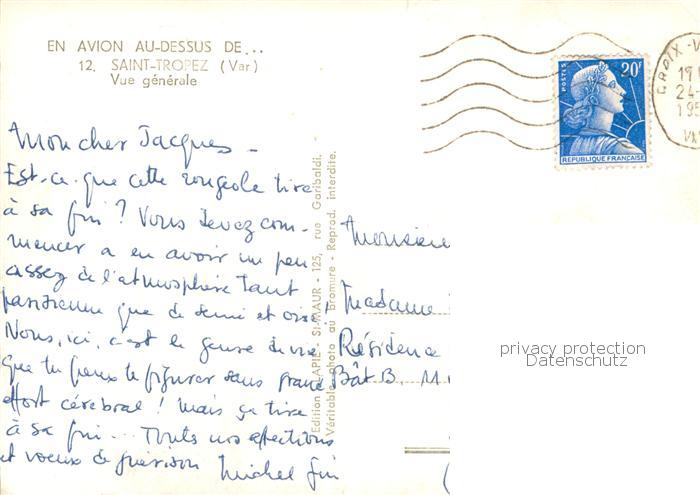 13831868 Saint Tropez Var Vue generale aerienne postalisch gelaufen Erhaltung siehe scans [FriedD77] carte postale Frie Katcode 11170083183119