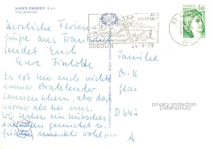 13843296 Saint Tropez Var Vue Generale Côte d Azur postalisch gelaufen Erhaltung siehe scans [FriedD77] carte postale Frie Katcode 11170083183119