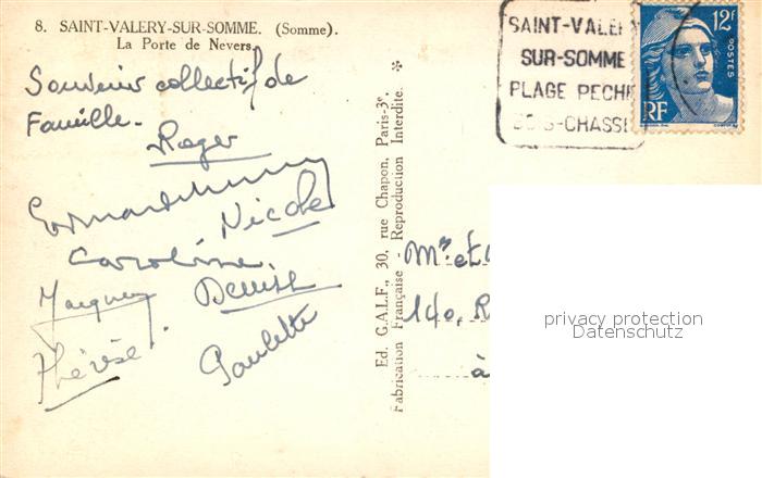 13594250 Saint-Valery-sur-Somme La Porte de Nevers postalisch gelaufen Erhaltung siehe scans [FriedD77] carte postale Frie Katcode 11170080180721
