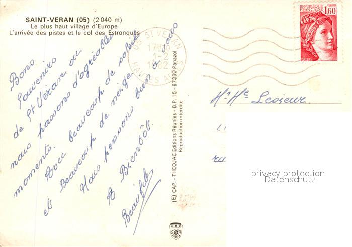 13581231 Saint-Veran Le plus haut village d_Europe Sports d’hiver Pistes Col des Estronques KatCode 11170005105157