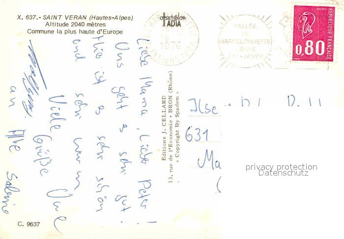12882000 Saint-Veran Panorama Commune la plus haute d_Europe Eglise Gemse KatCode 11170005105157