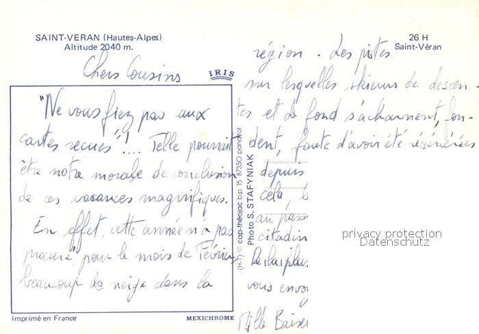 Saint-Veran Village en hiver postalisch nicht gelaufen Erhaltung siehe scans [FriedD77]