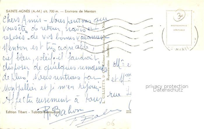 13493433 carte postale Sainte-Agnes Nice Panorama Alpes postalisch gelaufen Erhaltung siehe scans [FriedD77] KatCode: 11170006206113