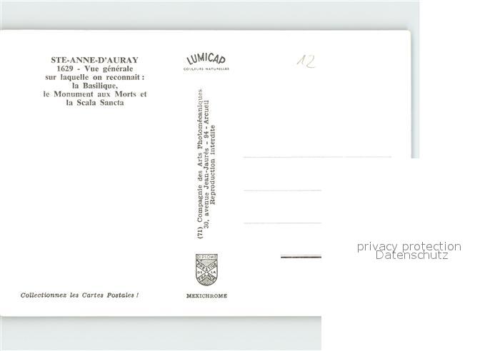 12255192 Sainte-Anne-d Auray Vue generale aerienne sur laquelle on reconnait La Basilique le Monument aux Morts et la Scala Sancta postalisch nicht gelaufen Erhaltung siehe scans KatCode: 11170056156263