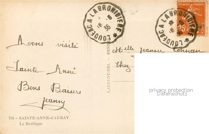 13786542 Sainte-Anne de Auray 56 La Basilique postalisch gelaufen Erhaltung siehe scans [LiesaD40] carte postale Lies Katcode 11170056156263