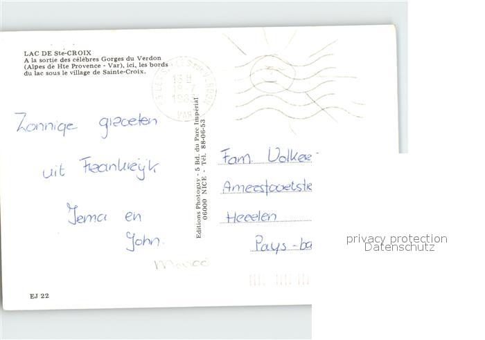 12330236 carte postale Sainte-Croix-du-Verdon Lac de Sainte Croix postalisch gelaufen Erhaltung siehe scans KatCode: 11170004304176