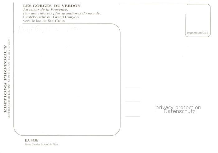 13720010 Sainte-Croix-du-Verdon Le Debouche du Grand Canyon vers le Lac de Sainte Croix postalisch nicht gelaufen Erhaltung siehe scans [WerneD78] Wern Katcode 11170004304176