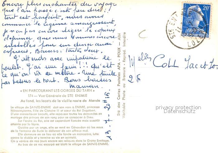 13514693 carte postale Sainte-Enimie Fliegeraufnahme postalisch gelaufen Erhaltung siehe scans [KathaD81] KatCode: 11170048148146