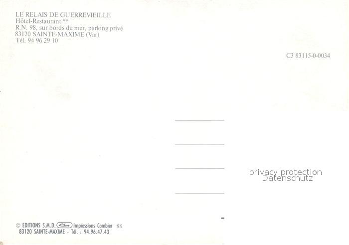 13234993 Sainte Maxime sur Mer Var Le Relais de Guerrevieille Hotel Restaurant postalisch nicht gelaufen Erhaltung siehe scans [WerneD78] KatCode: 11170083183115